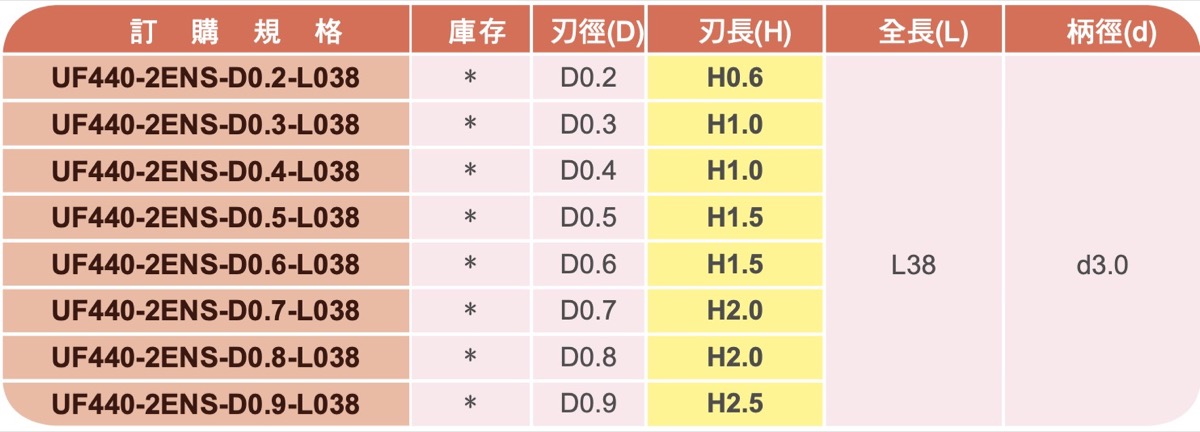 微小徑銑刀 | 2刃 | 泛用型 | HKF品牌