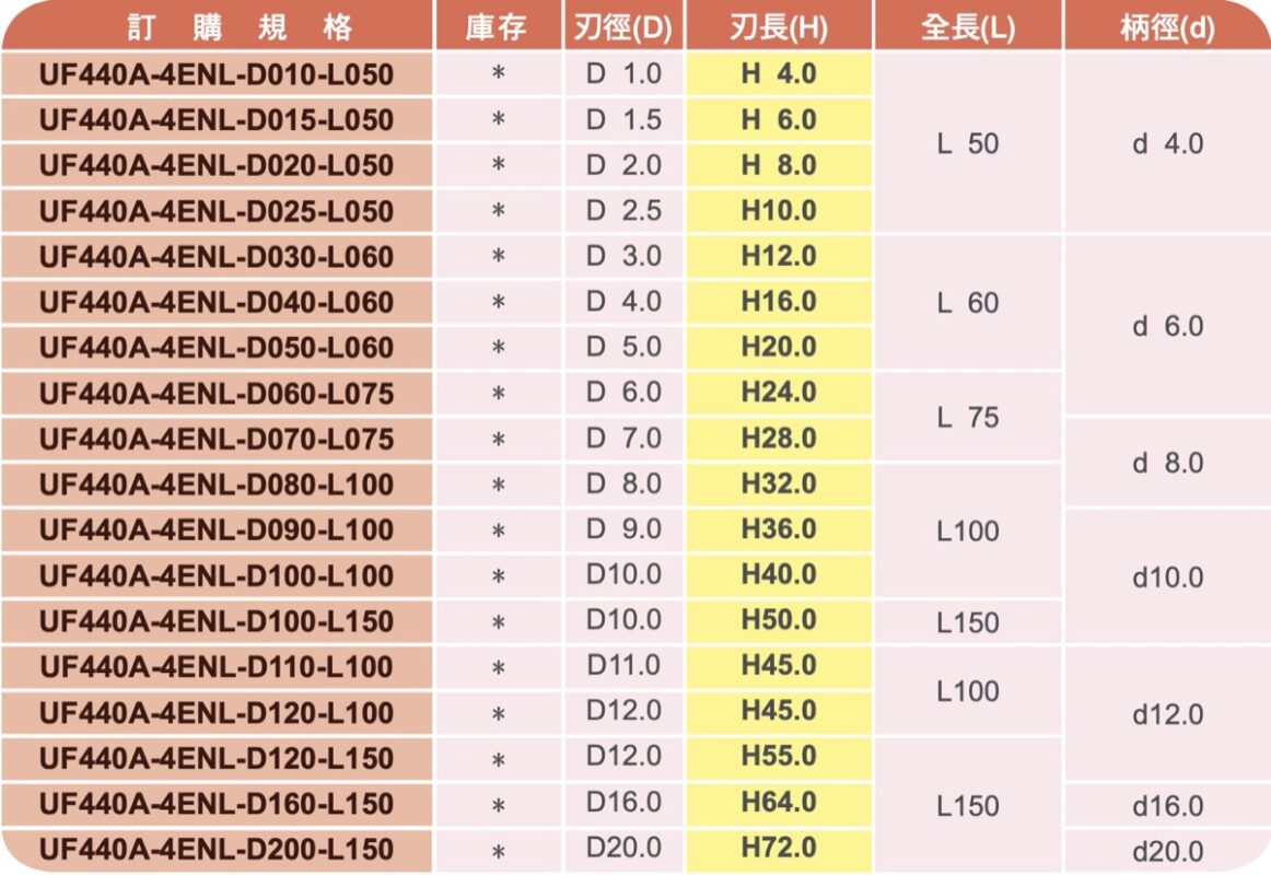 4刃立銑刀 | 長刃 | 泛用型 | HKF品牌