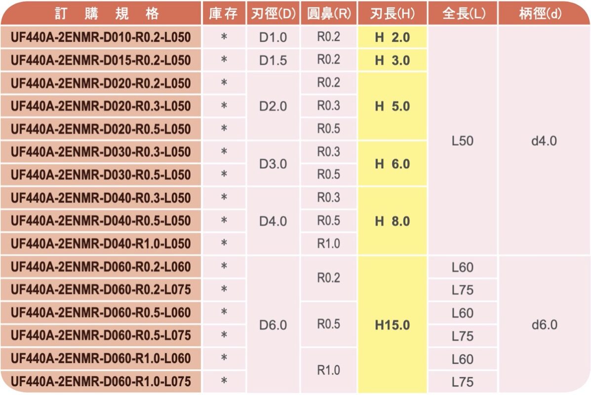 • 高硬度及高速切削最佳選用立銑刀規格。