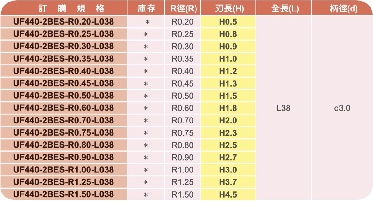 微小徑球刀 | 泛用型 | 2刃 | HKF品牌