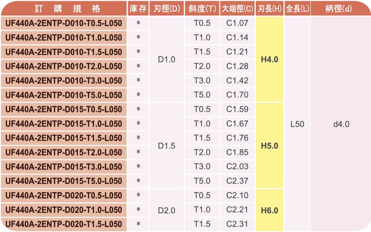 高硬度及高速切削最佳選用立銑刀規格。