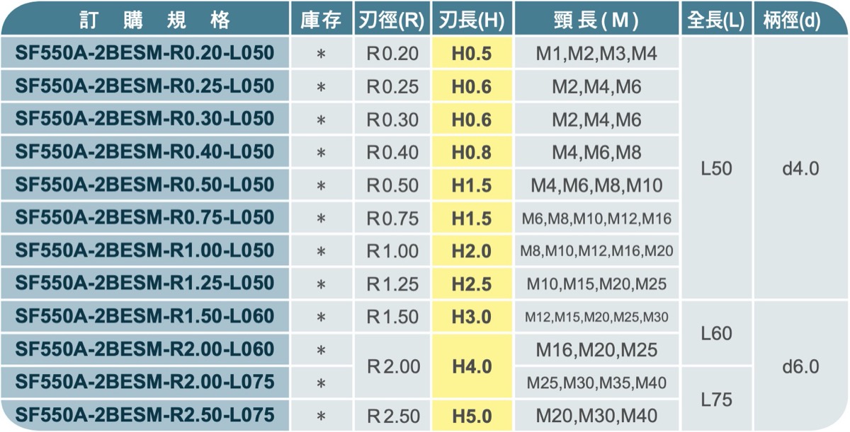2刃細頸球型銑刀 | 德國原棒 | 高硬度用 | HKF品牌